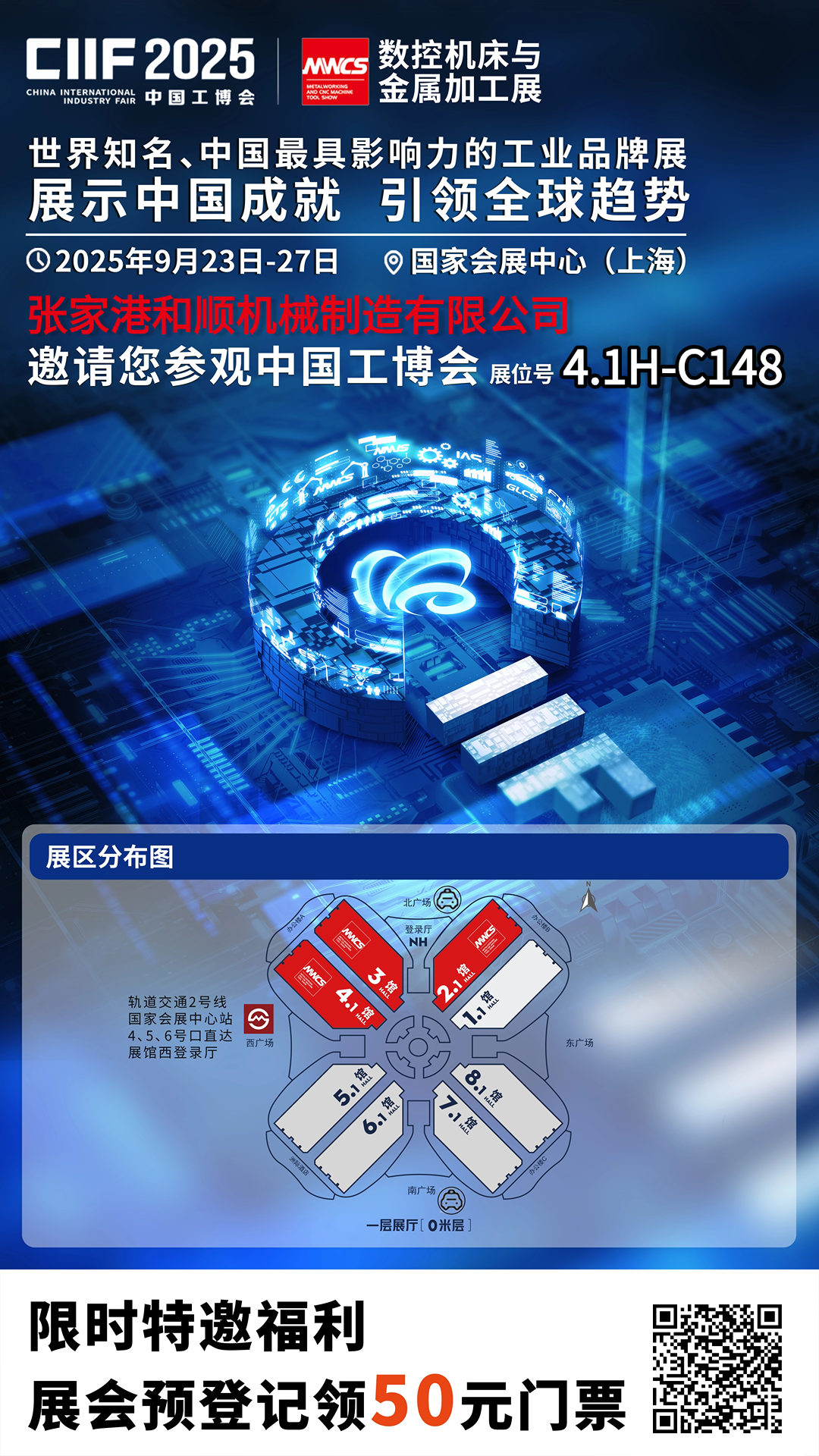 秋色宜人,盛会如约。第25届中国国际工业博览会将于9月在上海隆重启幕。张家港和顺机械有限公司 诚挚邀请您莅临“数控机床与金属加工展(MWCS)”的现场,亲临我们的展台(4.1H-C148),一同探索管材加工与汽车零部件制造的创新技术与卓越解决方案。