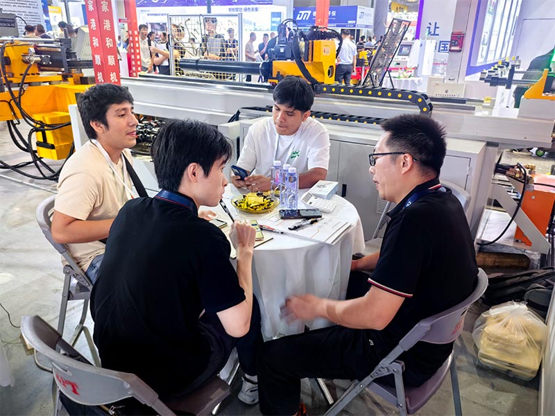工博会第二天,我们的展位热度持续攀升!今天下午,我们迎来了一位特别的客人——江苏中电环境工程有限公司的技术团队。作为一家专业的换热器制造企业,他们对我们的管材加工设备展现出了浓厚的兴趣。